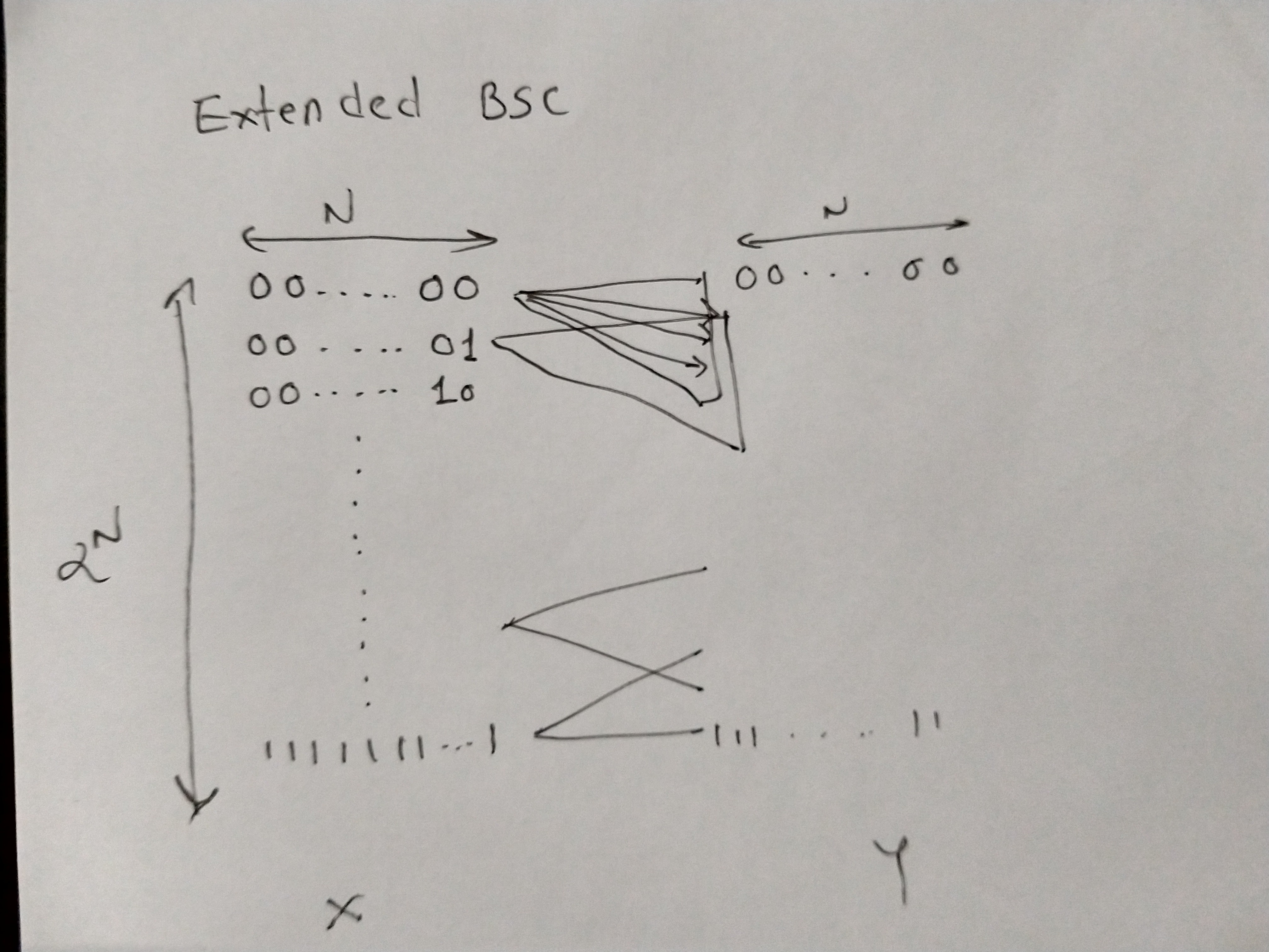 Consider extended BSC channel, each block code of length N and total input space (X) of size 2N