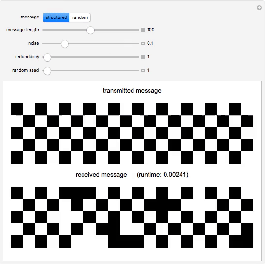 illustrates how the introduction of noise in a channel can be compensated with the introduction of redundancy, by sending multiple copies of every bit.