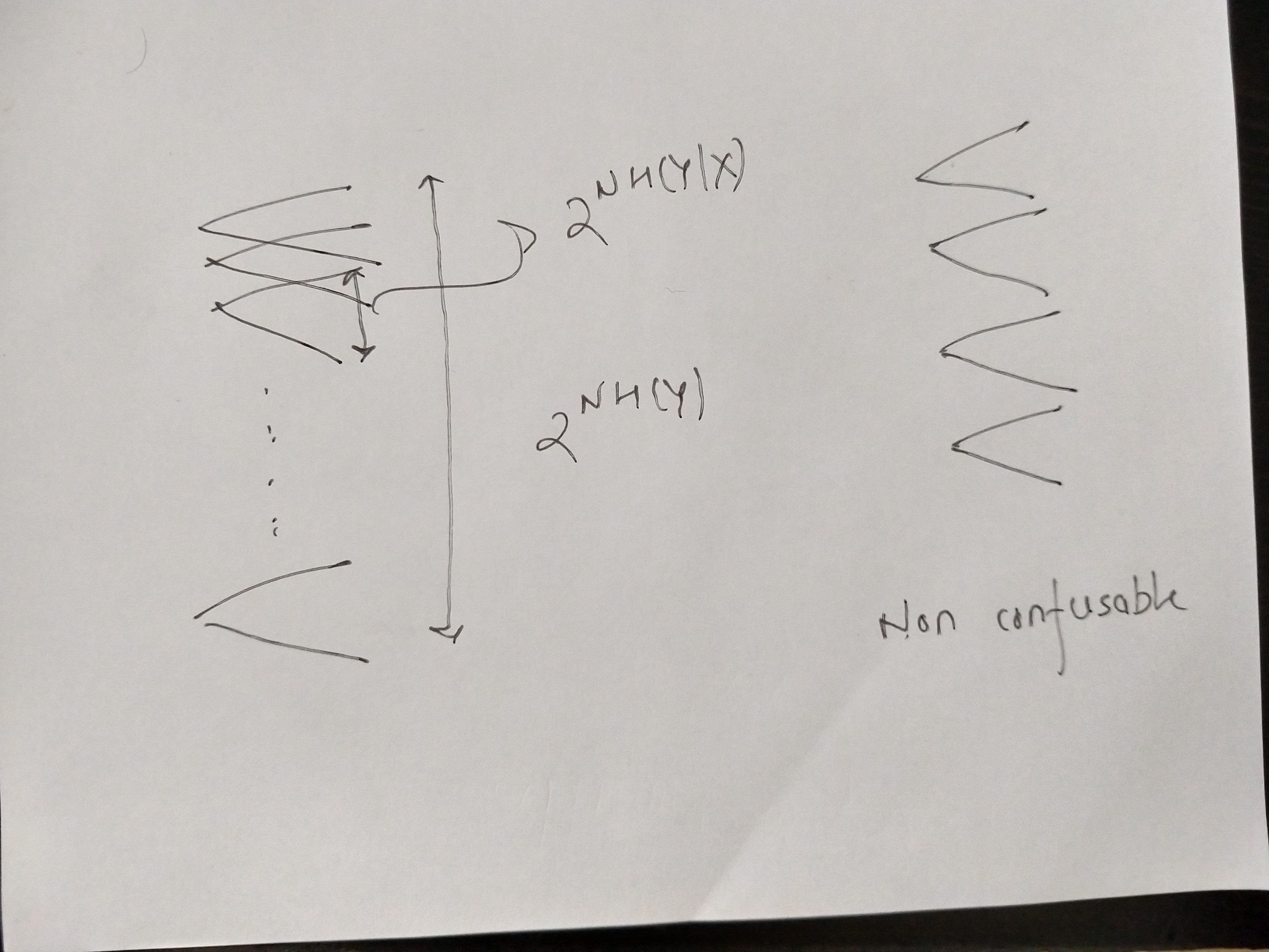 almost certainly non confusable input sets = 2NH(Y)2NH(Y|X)